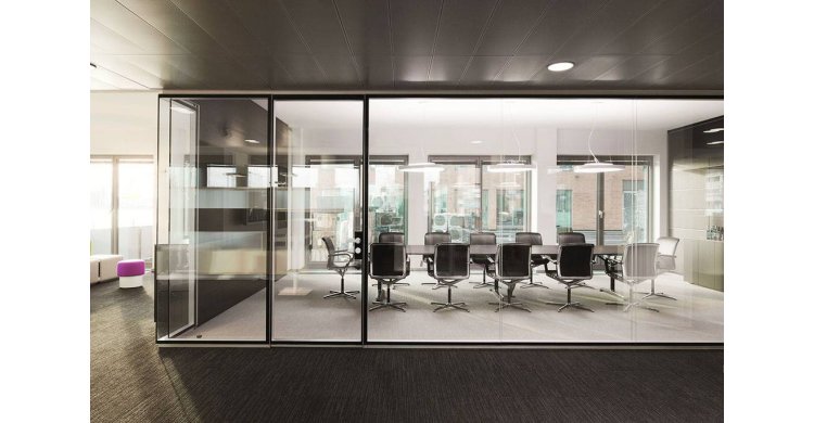 - Стеклянные. Хорошее решение для открытой организации пространства. За счет прозрачности все сотрудники остаются на виду, но при этом перегородки снижают уровень шума. Это популярный вариант, так как подходит под любой интерьер.