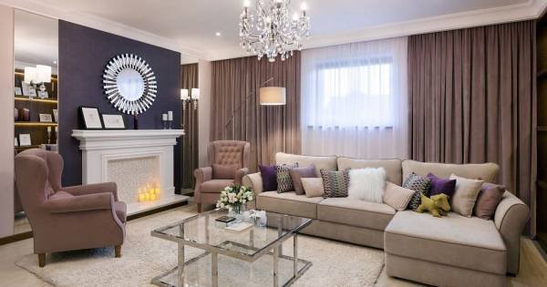 - Вітальня. Для вітальні безпрограшна рішення – класика у вигляді однотонного полотна. Якщо вам здається, що воно виглядає занадто просто – прикрасьте його декоративними шторами з фризом чи китицями.