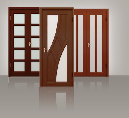 Кроме этого в межкомнатных дверях широко используются стеклянные вставки из матового, прозрачного, затуманенного стекла. Стекло может обладать различным рисунком (как фактурным, так и естественным) либо зеркальным эффектом.