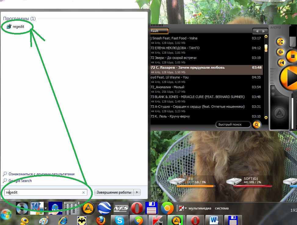 Для начала очистки необходимо открыть редактор реестра (regedit.exe) – специальная утилита, предназначена для внесения изменений в реестр операционной системы. В строчке поиска меню Пуск латинскими буквами необходимо написать regedit (см.рис. 1).