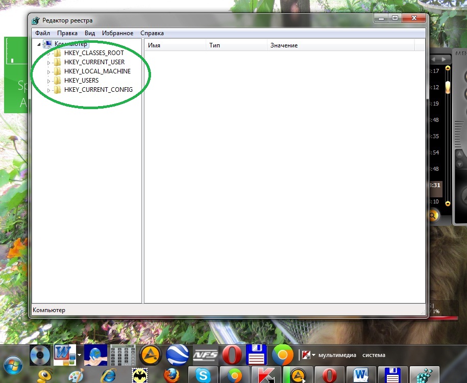 После выполнения вышеперечисленных действий должно открыться окошко утилиты, в котором вы увидите пять основных веток реестра (см.рис. 4).