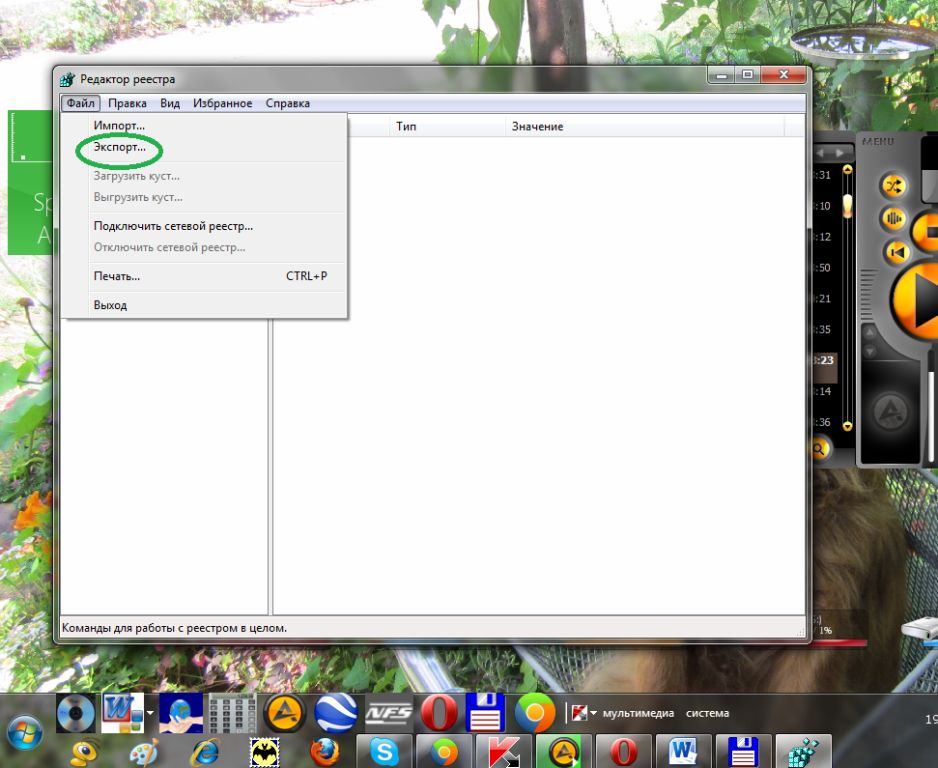 Перед тем, как приступить к непосредственному редактированию и очистке реестра, необходимо сохранить текущую версию реестра. Для этого в меню файл выбираем пункт Экспорт (см.рис.5).