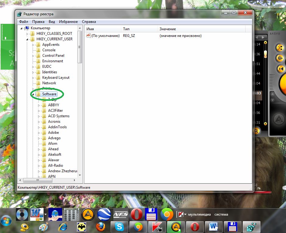Для удаления информации о деинсталлированной игре или программе необходимо перейти в HKEY_CURRENT_USERSoftware (см.рис.7).
