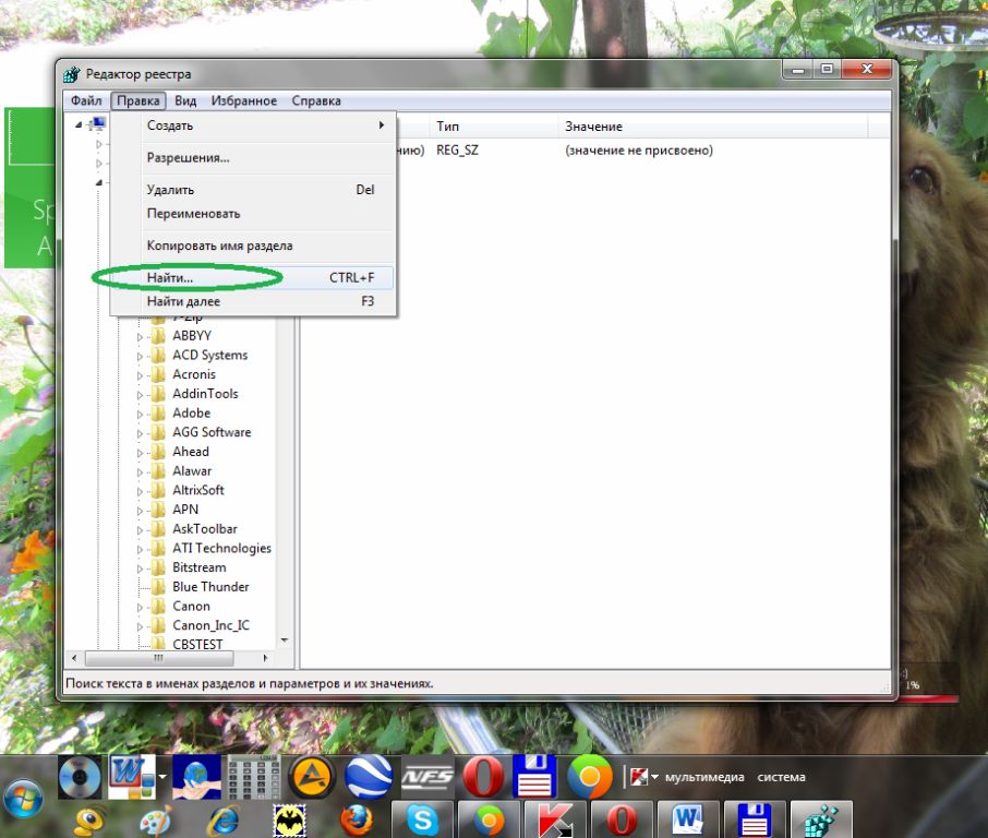 Очистки реестра при помощи редактора реестра