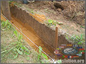 После того, как закончена разметка территории, можно приступать к выкапыванию необходимых для заливки фундамента траншей. Это довольно тяжелая работа, поэтому рассмотрите возможность привлечения строительной техники. Траншеи роют глубиной до 1,1 метра – в песчаном грунте, а в глинистом или супесчаном – от 1,25 до 1,5 метра. Эту работу нужно выполнять исключительно перед тем, как начнёте заливать фундамент, поскольку у заранее выкопанных фундаментных траншей существует опасность осыпания стенок.