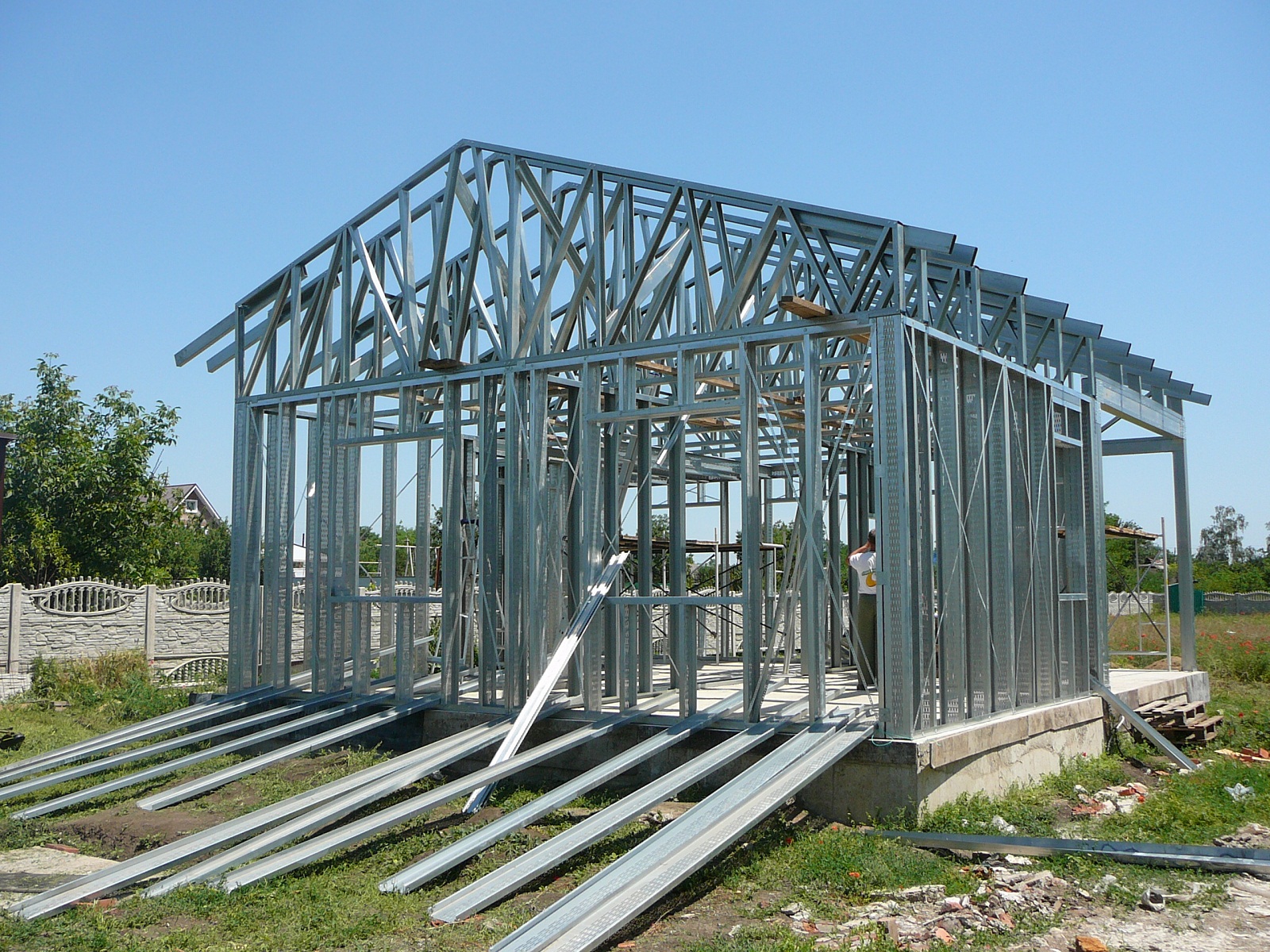 Каркасные здания очень быстровозводимы и относительно не дорогие. При постройке такого здания не нужно строить крепкие фундаменты, так как материал очень легкий и дом получается более легкий, чем при строительстве зданий используя другие материалы.