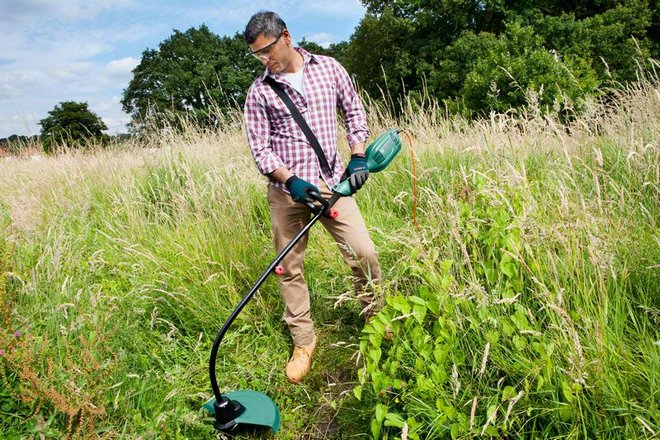 Триммер - это своего рода штанга, на одном конце которой располагаются органы управления, система крепления, элементы питания (электродвигатель или АКБ), а на другой - рабочий инструмент или режущая головка со встроенными вращающимися насадками. Сами триммеры, независимо от своего дизайна, подразделяются на две большие группы, в зависимости от типа режущего инструмента. Их всего два: леска (сечение от 1,2 до 2,5 мм) и нож (трех- или четырехлопастные насадки из металла или пластика).