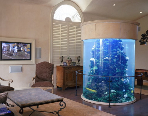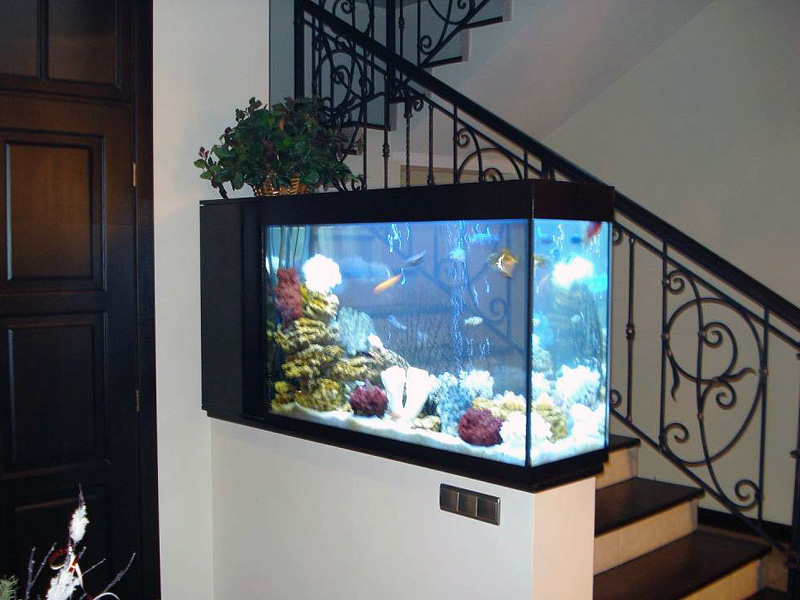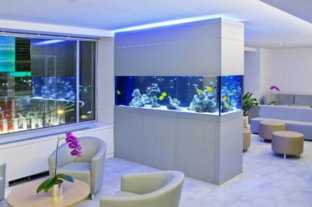 Сегодня аквариумы для интерьера используют все чаще. Поскольку они являются украшением и придают более изысканный вид. Наиболее популярны встроенные аквариумы, поскольку они занимают мало места и встраиваются в стены, шкафы и другие предметы быта. Кстати, примеры встроенных аквариумов вы можете посмотреть на сайте студии "THE AQUARIUM": http://www.the-aquarium.com.ua/.