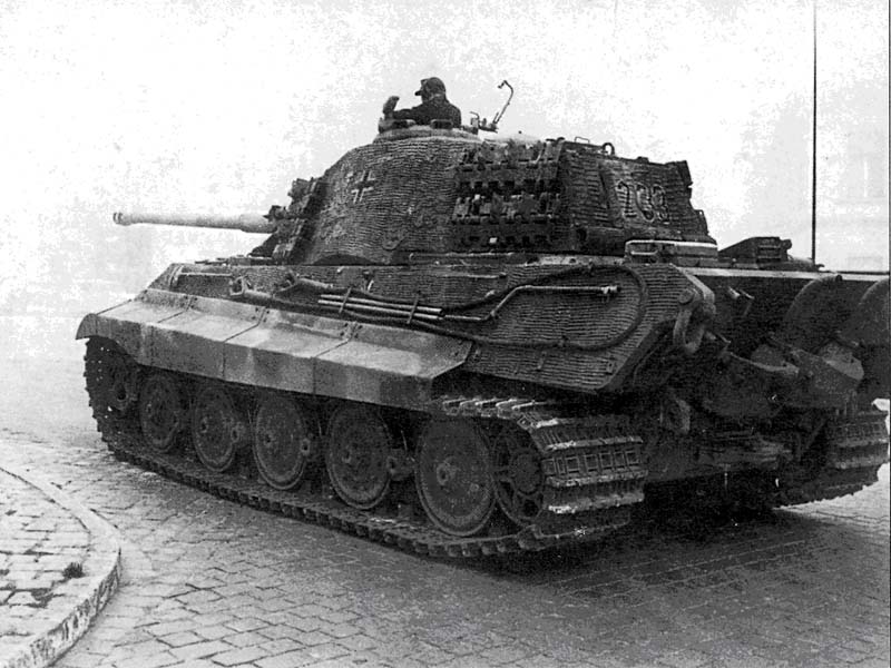 Таким образом, в ответ на модернизацию союзного вооружения, был создан мощнейший за всю войну тяжелый танк «Тигр II», или как его еще окрестили - «Королевский тигр». Серийно, за последний год войны было выпущено 489 единиц «Королевского тигра». Этот танк обладал мощным 88-мм орудием, которое на раз справлялось с любым противником на поле боя. Кроме того, на вторую модель Тигра была установлена более толстая и прочная броня, компонируемая под различными углами, что позволяло снизить его уязвимость от прямых попаданий из большинства танков и противотанковых орудий союзников. Тем не менее, танк имел и свои слабые стороны, которые в принципе и сказывались на его общей надежности: при общем весе в 68 тонн он имел недостаточно мощный двигатель, что потянуло за собой заниженные ходовые характеристики.