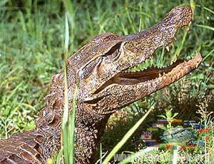 Гладколобый кайман. Его длина не превышает полутора метров.