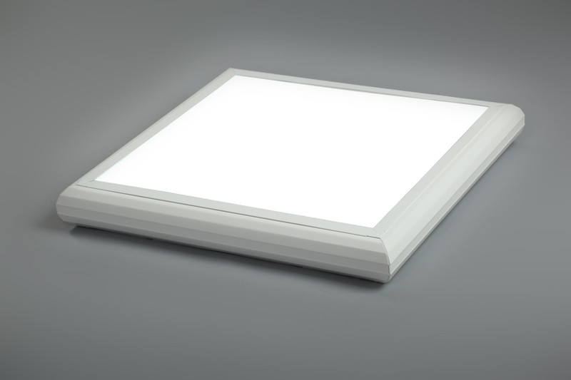 Одним из наиболее интересных видов накладных светодиодных светильников являются потолочные панели. Это один из примеров того, как за счет продуманных технических решений можно снизить энергопотребление, совершенно не теряя при этом в мощности светового потока. Они представляют собой многослойную конструкцию, отличительными особенностями которой является наличие большой светопроводящей линзы, оборудованной специальными лазерными насечками. Линза занимает фактически всю площадь панели, а сами светодиоды расположены по ее периметру. Излучение происходит в торцевые части линзы, где расположены насечки, направляющие поток на светоотражающую поверхность и перпендикулярно вниз к рассеивателю. Таким образом, устраняется необходимость заполнения панели светодиодами.