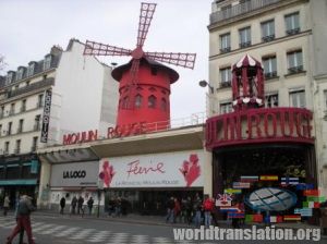 В переводе с французского языка Moulin Rouge означает Красная мельница, такое имя кабаре получило в честь деревянной мельницы с красными лопастями, которая венчает здание театра. А основоположниками театра были Жозеф Оллер и Шарль Зидлер, которые приурочили его открытие к