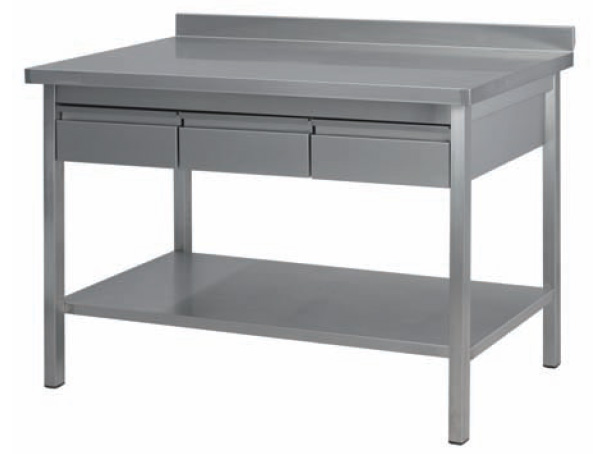 Главными требованиями к производственной мебели являются выдерживание огромных механических нагрузок и большая износостойкость. Именно поэтому, в основном такую мебель делают из метала, а самую качественную изготавливают на металокаркасе, который, в свою очередь, производится посредством сваривания конструкции квадратного сечения из профильной трубы. Далее данное изделие обшивается листовым металлом, в него встраивают выдвижные лотки, полки, ящики, а в ножки вставляют опоры, которые регулируются.