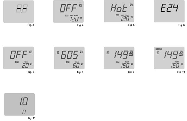Перед вводом в эксплуатацию ручка защиты «Safe Temp» (F) должна быть повернута до упора вправо (маленькая стрелка на ручке показывает вправо вниз).