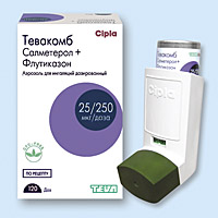 Тевакомб – еще один аналог Беродуала. Как и препарат из предыдущего типа. Его действие направлено на то, чтобы снижать аллергическую реакцию и увеличивать легочную емкость. Препарат предотвращает бронхиальное сужение и минимизирует возможный бронхоспазм.