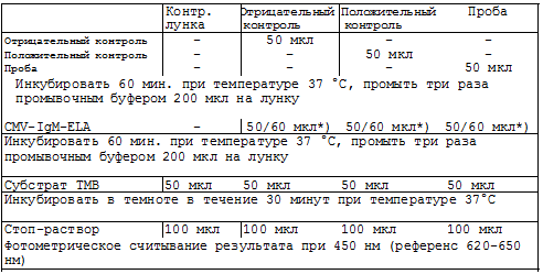 Реагенты, специально предназначенные для теста (микропланшет, контроли, CMV-IgM-ELA) нельзя смешивать с реагентами из других наборов (партий). В противоположность этому буфер для разбавления проб, промывочный буфер, субстрат ТМВ и стоп-раствор являются, как правило, взаимозаменяемыми для всех вирусологических тестов компании medac.