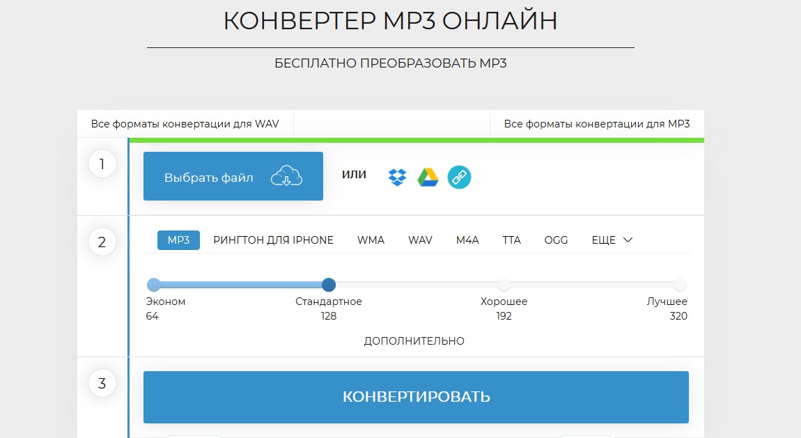 Основные "+" онлайн-конвертация аудио на сайте online-audio-convert.com: