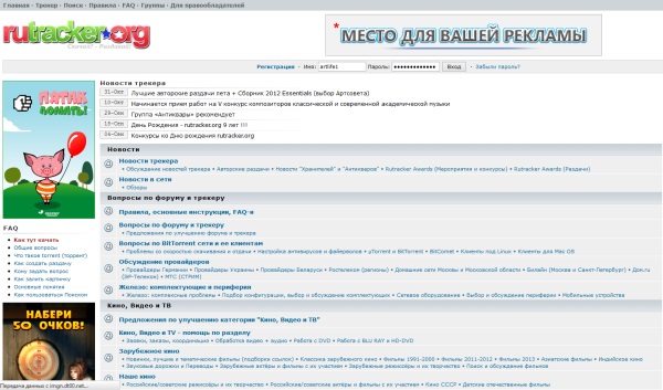 І так. Найбільшим торрент порталом в рунеті є торрент трекер Rutracker.org, щоденна відвідуваність якого від 1.5 до 2 млн відвідатиІТЕЛ в день, де можна знайти або завантажити практично будь-який матеріал в різному вигляді. Загальна вартість цього трекера приблезительно млн. Так як файлів і новин на цьому ресурсі з кожним днем ??збільшується з величезною швидкістю, це не може не відіб'ється так само і на відвідуваність і аудиторію. Даний торрент трекер діє вже дуже довго, через що вже довів свою популярність і життєздатність.