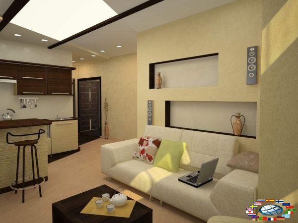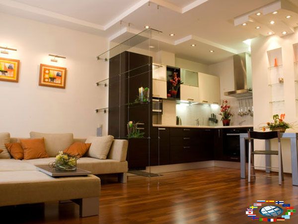Именно отсутствие перегородок и межкомнатных дверей делает такую квартиру более доступной в цене при строительстве нового жилья. На практике чаще всего студию получают в результате перепланировки однокомнатной квартиры (максимум двухкомнатной), но это только в том случае, если нет несущих стен внутри помещения. Это стоит немалых денег, но в случае следующего ремонта затраты на материалы и работу будут существенно ниже. К «новостроям», где все равно приходится проводить заново все отделочные работы, это не относится. Следует также учитывать и то, что организовать и отделать одно большое помещение проще, чем два или три маленьких (в том числе с точки зрения интерьерных решений). А уж в совмещении зоны отдыха и сна, рабочего кабинета, прихожей, зала и гостиной в нашей стране благодаря «квартирному вопросу» нет равных.
