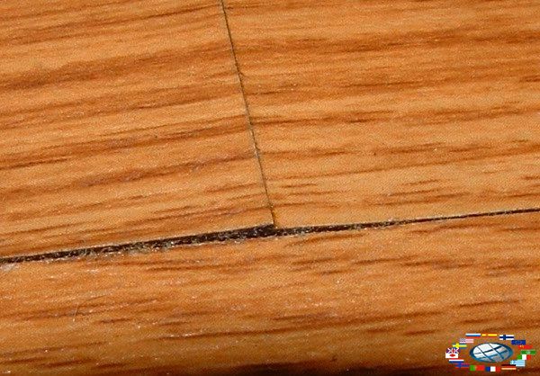 Папір, яка входить до складу верхнього шару ламінат а, просочується смолою. Ось тільки в дешевому ламінат е просочення всього лише одношарова, за рік, максимум два, шар лаку істірается і покриття приходить в повну непридатність. Китайське виробництво ламінат а відрізняється ще, до всього іншого, та використанням кускового шпону, що теж позначається на міцності плити. Хороший ламінат від дешевого можна відрізнити за замковій системі. Китайськийтовар грішить одноманітністю і низьким рівнем виконання замків. Недовговічність замкових з'єднань призводить до утворення щілин і порушення стабільності ламінованого покриття.