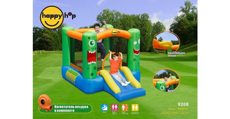 Детские батуты надувные Happy Hop – это готовые игровые комплексы для детей от 2 до 14 лет. Их можно установить как в игровом центре, так и на своем участке у дома.