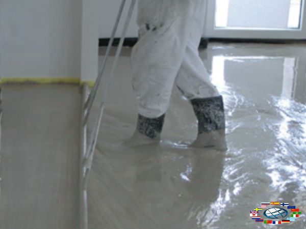 Мы будем использовать ангидридовый наливной пол Крайзель ANHYDRIT-VERLAUFMASSE 400, так как он высокоустойчив к нагрузкам, его удобно и легко использовать, время застывания 48 часов, толщина наливаемого слоя от 20 до 60 мм, хорошо аккумулирует тепло, применяется для полов с электрическим или водным подогревом. В случае применения системы с подогревом пола минимальный слой над теплоэлементами должен составлять 30 мм. Если перепады уровня превосходят 60мм, то залитие необходимо делать 2 этапа, либо использовать в качестве первого наливаемого слоя цементную стяжку, которая удешевит стоимость выполняемых работ.
